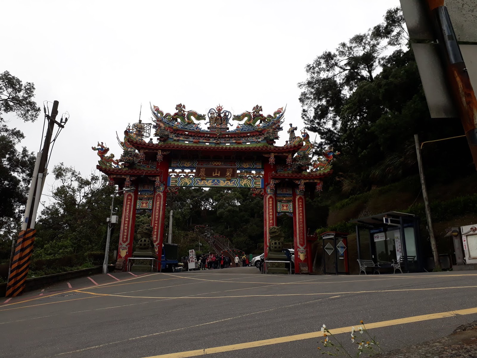 Turun dari bis melihat ke arah kiri adalah gerbang kuil tempat sembahyang orang Taiwan .